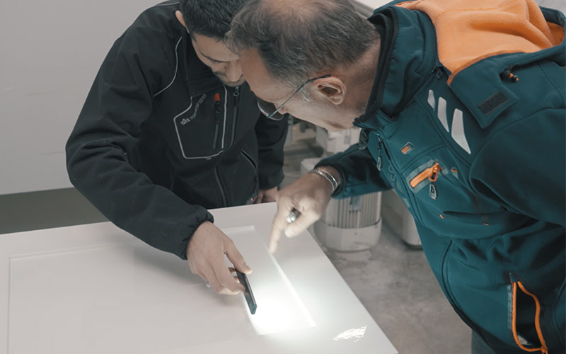 Il processo di polimerizzazione UV consente di raggiungere livelli di opacità inferiori ai 5 gloss, per un’estetica intensa, sofisticata e priva di riflessi indesiderati.